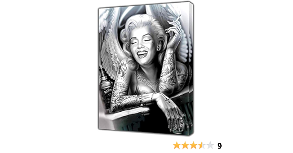 Amazon De Jasonnhz Schwarz Weiss Marilyn Monroe Engel Portrait Leinwand Malerei Wand Kunst Tattoo Rauchen Frauen Poster Und Drucke Wohnkultur Bilder Fur Schlafzimmer Wohnzimmer Frameless 70 90cm