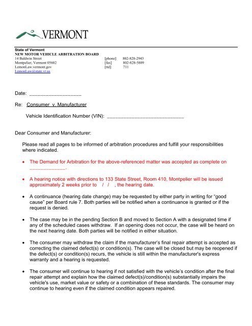 Case Acceptance Letter Vermont Department Of Motor Vehicles